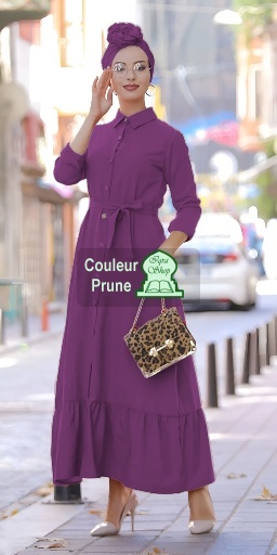 Robe longue avec boutons sur l'avant et ceinture - Couleur prune Vetement & Accessoire