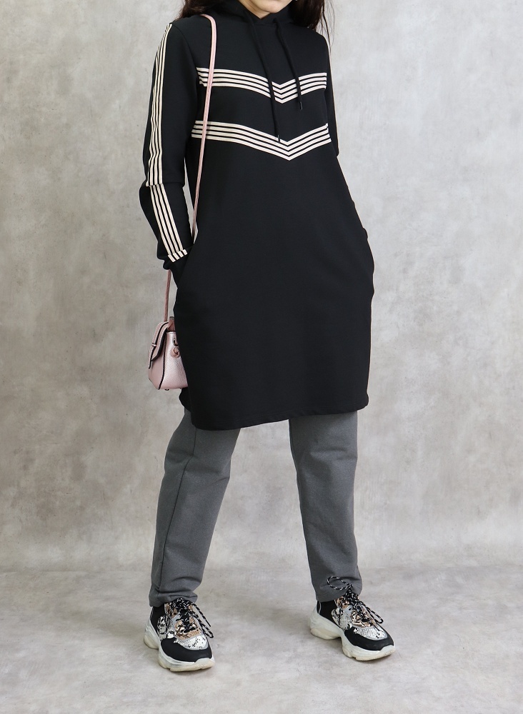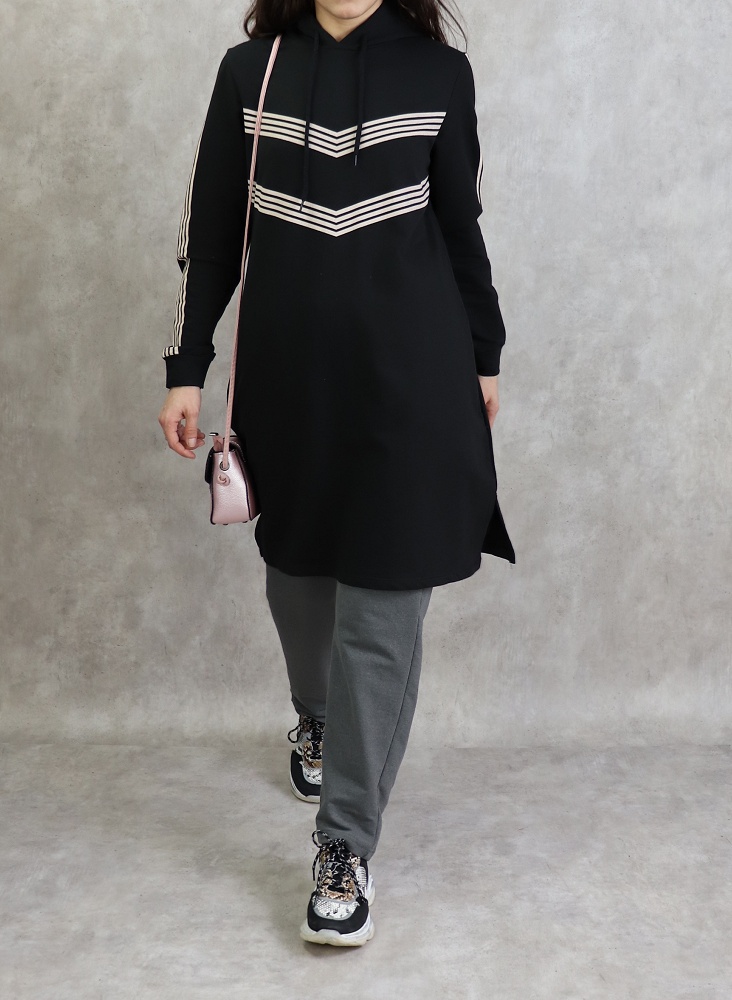 Tunique ample style décontracté et sport (Sweat Hijab moderne) - Couleur gris foncé - REF. 35506 (25.00 €) - En Promotion à 19.90 €