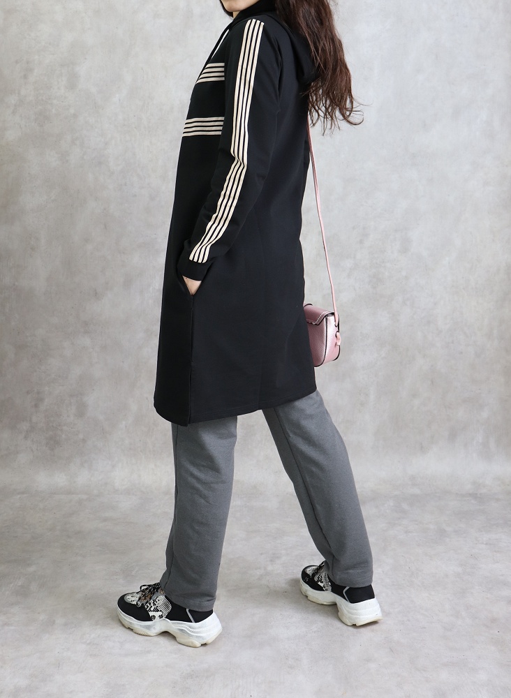 Robe sweat-shirt longue pour femme musulmane - Vetement Modest Fashion (Mode islamique) - Couleur noir et beige - REF. 32813 (28.00 €)