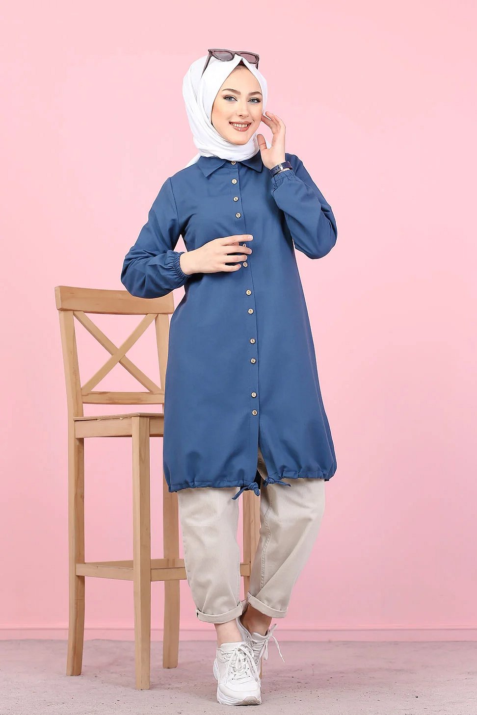 Tunique-Chemise ample boutonnée (Vêtement moderne et décontracté pour hijab) - Couleur bleu Pétrole Vetement & Accessoire