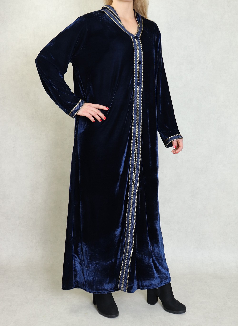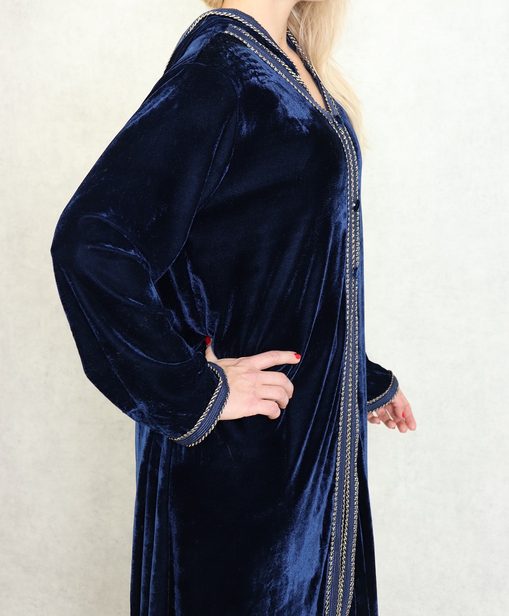 Robe Djellaba longue avec capuche pour femme (Automne Hiver) - Couleur Bleu marine