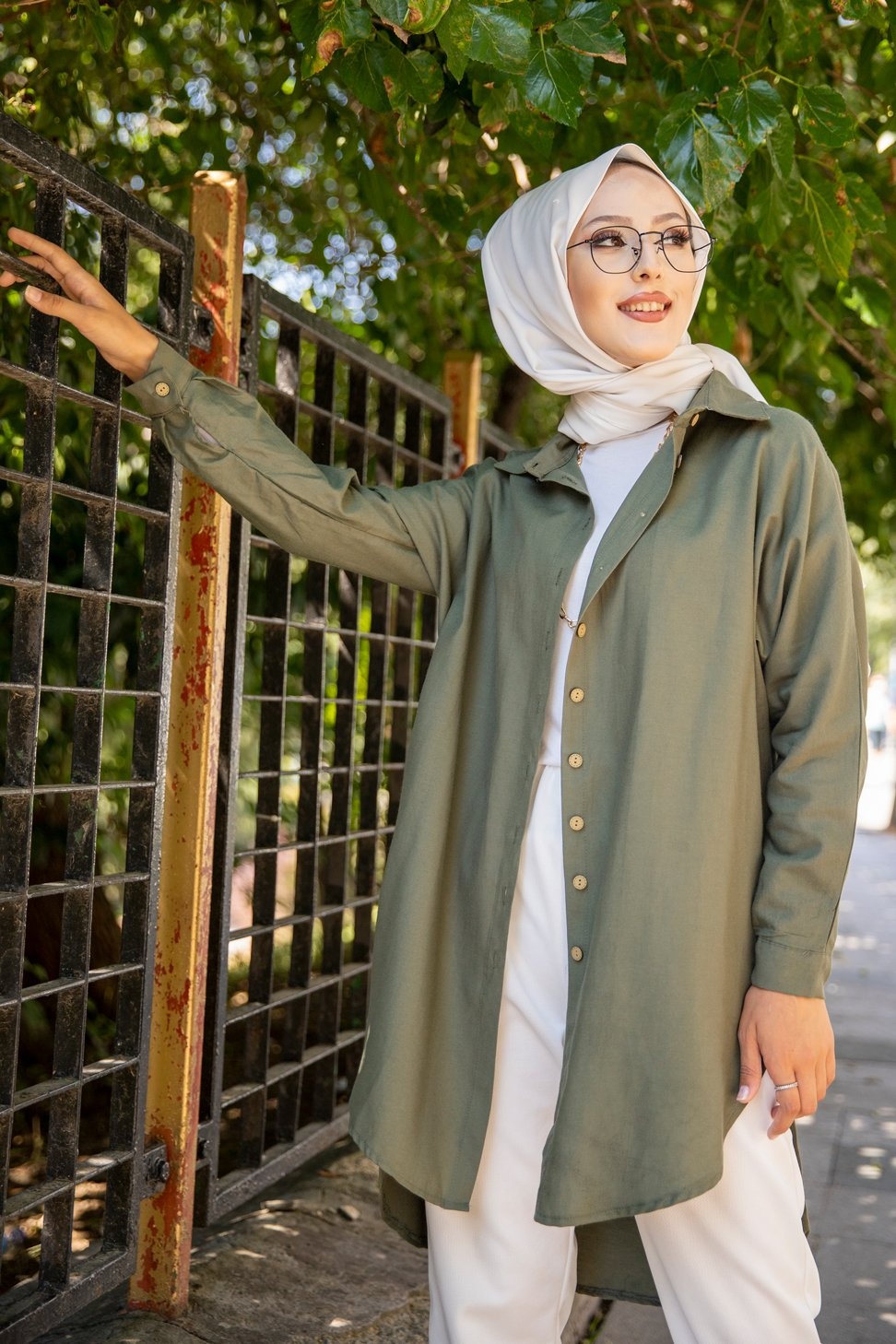 Chemise longe pour femme (Vetement pour hidjab nouveaute 2025) - Couleur kaki
