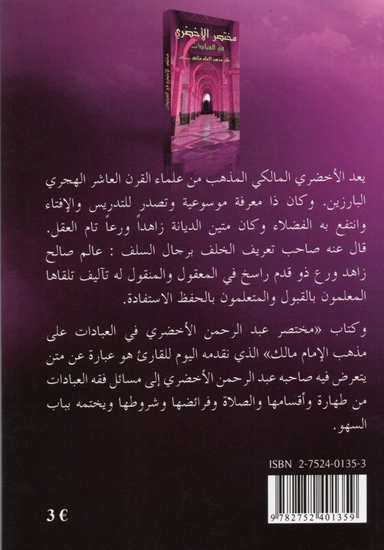 مختصر الأخضري ، هو عبارة عن متن ل عبد الرحمن الأخضري ، تعرض فيه إلى مسائل فقه العبادات على مذهب الإمام مالك من: الطهارة وأقسامها، الصلاة وفرائض ها وشروطها، وختمه بباب السهو