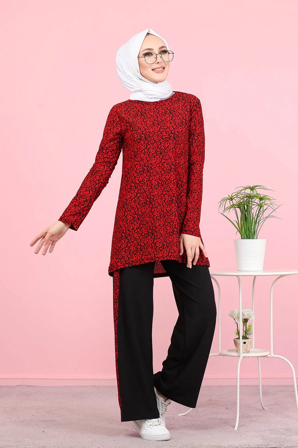 Ensemble 2 pieces decontracte tunique et pantalon (Ensemble femme voilee) - Couleur noir et rouge