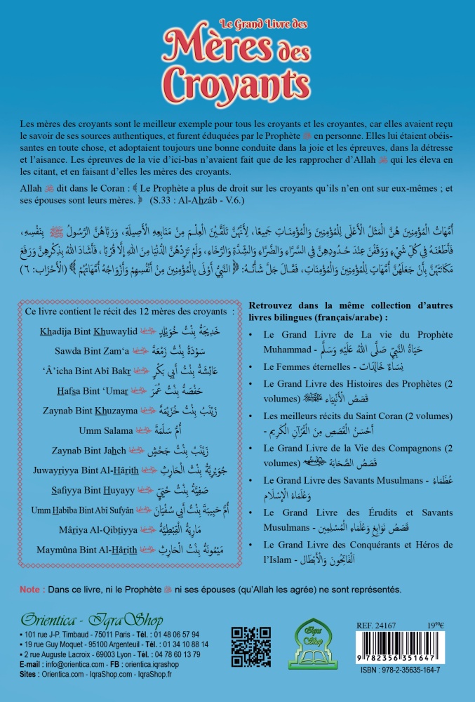 Retrouvez dans cette collection tous les grands livres aux textes bilingues (français et arabe vocalisée), et parcourez les centaines de pages illustrées de ces livres pour toute la famille (enfants et adultes)... Découvrez les histoires merveilleuses du Coran, des prophètes, de l'islam et de ses bâtisseurs et grands héros, des personnages illustres, des érudits et savants, hommes et femmes qui ont marqué à jamais l'histoire islamique et mondiale... |