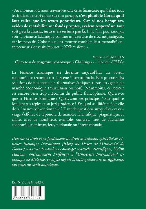 La Finance Islamique est devenue aujourd’hui un acteur économique reconnu sur la scène internationale. Elle propose des solutions de financements alternatives éthiques à tous les agents du marché économique (musulman ou non). Néanmoins, ce secteur est encore bien trop méconnu du public francophone. Qu’est-ce que la Finance Islamique ? Quels sont ses principes ? Sur quoi se fondent ses règles et sa jurisprudence ? En quoi se différencie-t-elle de la finance conventionnelle ? Tant de questions auxquelles cet ouvrage s’efforce de répondre de manière scientifique, pragmatique et claire, avec de nombreux exemples concrets tirés de l’actualité économique et financière, nationale ou internationale.