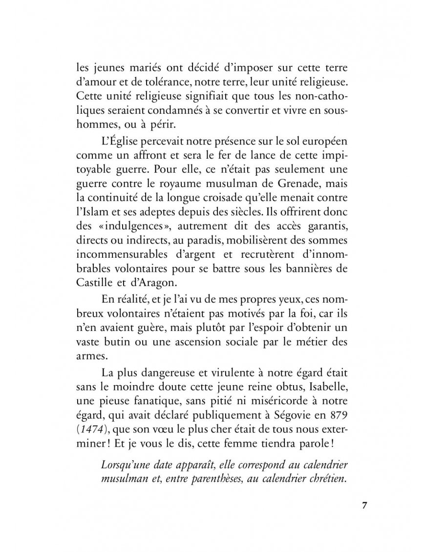 Mon nom est Sukayna et je m'apprête à vous conter les circonstances et la véritable histoire de la chute du royaume de Grenade, dernière forteresse des musulmans d'al-Andalus.