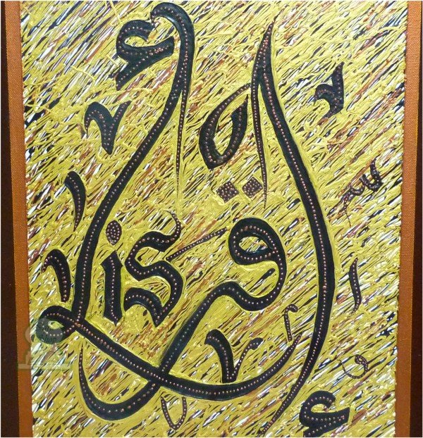 Vous rêvez d'avoir une oeuvre d'art unique chez vous et non pas une copie, votre rêve peut être réalisé grâce à notre artiste peintre calligraphe chevroné. Il pourra vous réaliser un tableau de calligraphie arabe moderne personnalisée en fonction de votre description. Une fois la commande passée vous pourrez vous entretenir avec lui pour lui expliquer votre souhait en détail avant qu'il commence la réalisation de votre toile...