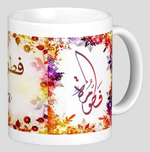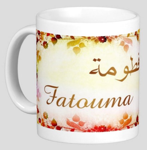 Mug avec le prénom "Fatouma" calligraphié en arabe (فطومة).