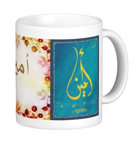 Voir l'ensemble des mugs dédiés au prénoms calligraphiés en arabe (Mugs prénoms arabes et musulmans féminins - Mugs prénoms français)