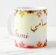 Mug avec le prénom "Hâmid" écrit en français, en arabe (حامد) et calligraphié de façon artistique en arabe sur la partie droite.