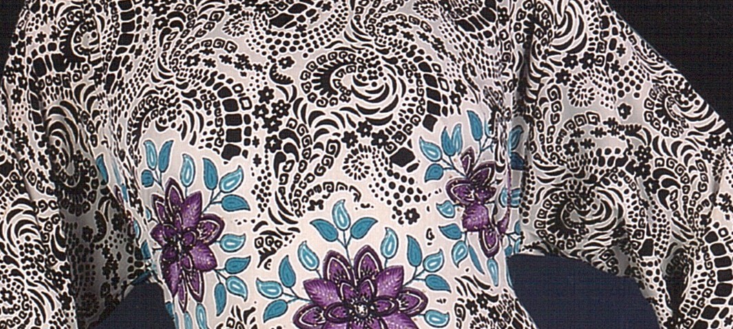 Robe orientale d'été à col rond, avec motifs fleuris et zébrés - REF. 20923 (22.00 €)