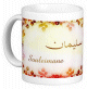 Mug avec le prénom "Noella" écrit en français, en arabe (نويلا) et calligraphié de façon artistique en arabe sur la partie droite.