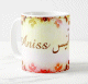 Mug avec le prénom "Line" écrit en français, en arabe (لين) et calligraphié de façon artistique en arabe sur la partie droite.