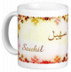 Mug avec le prénom "Marie-France" écrit en français, en arabe (ماري فرانس) et calligraphié de façon artistique en arabe sur la partie droite.