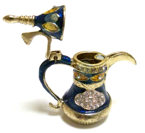Très bel objet décoratif métallique, orné de diamants, avec parties dorées et peint en bleu.