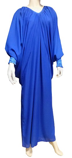 Robe confortable et habillée . Col en V satiné, manches amples resserrées aux poignets par une bande élastique froncée et satinée. Tissu léger style "organza" accompagné d'une doublure. Coupe papillon en haut et droite au niveau des hanches.