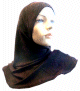Foulard hijab 1 pièce une partie matière élastique de couleur beige et une partie légère à positionner par dessus en crêpe à motifs fleurs marron clair et bleu ciel.