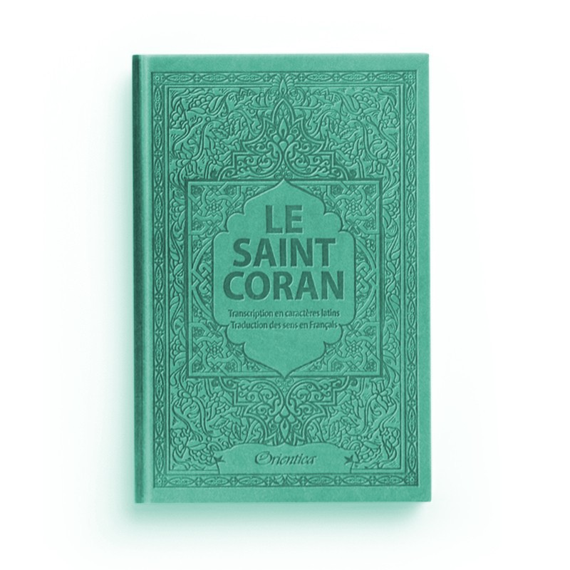 Le Saint Coran - Transcription phonetique (de l'arabe) et Traduction des sens en francais - Edition de luxe - Couverture en cuir vert-bleu
