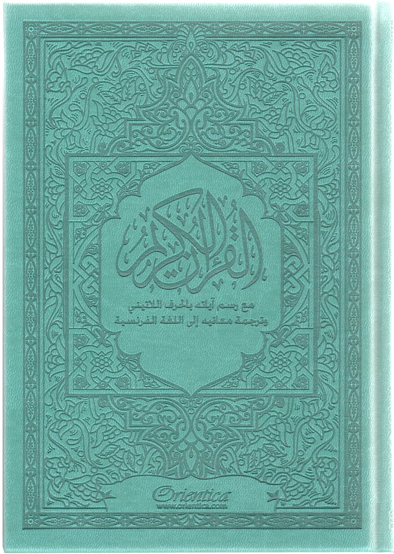Le Noble Coran et la traduction en langue française de ses sens (bilingue français/arabe) - Edition de luxe couverture cartonnée en cuir Bleu-vert - REF. 21509 (24.90 €)