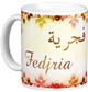 Mug avec le prénom "Louei" écrit en français, en arabe (لؤي) et calligraphié de façon artistique en arabe sur la partie droite.