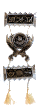 Objet décoratif doré sous forme paravent contenant plusieurs inscriptions calligraphiques :