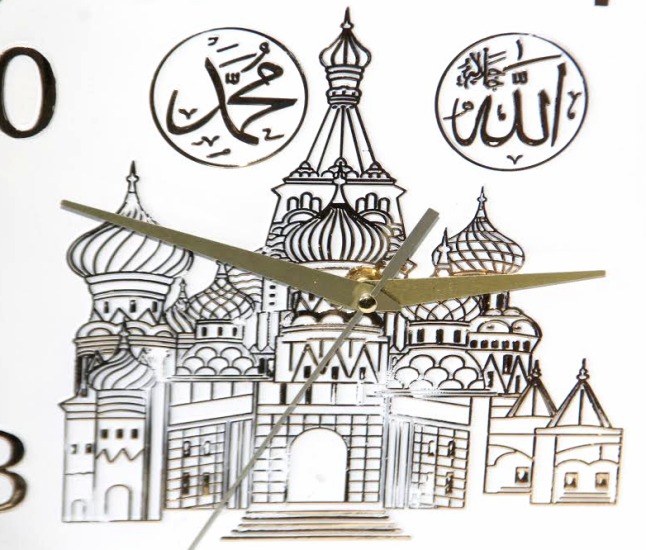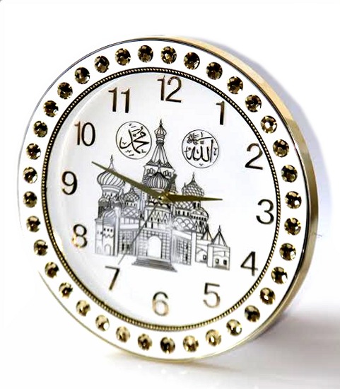 Cette horloge propose un design original avec sa mosquée représentée en fond ainsi que les inscriptions "Allah" et "Muhammed" placées à sa droite et à sa gauche. Elle ne sert pas uniquement à donner l'heure : habilement intégrée à votre intérieur, cette innovation polyvalente au design recherché animera vos murs, bureaux et autres surfaces.