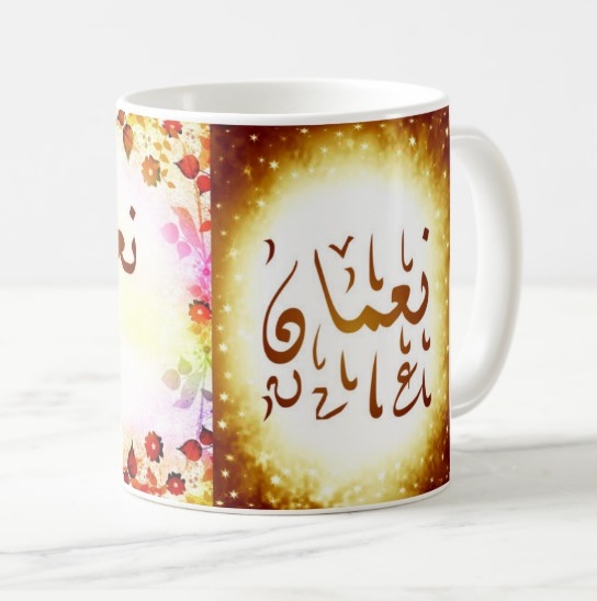 Voir l'ensemble des mugs dédiés au prénoms calligraphiés en arabe (Mugs prénoms arabes et musulmans féminins - Mugs prénoms français)