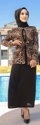 Ensemble deux pièces : veste motif léopard et robe noire avec collier assorti (Vetement hijab 2021) - REF. 33138 (39.00 €)