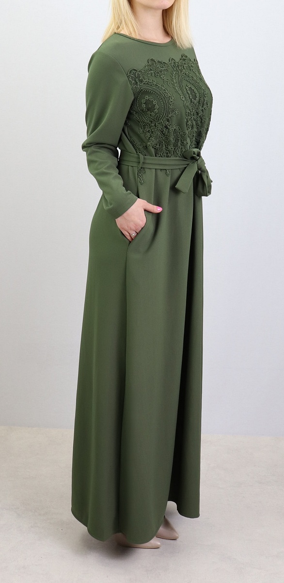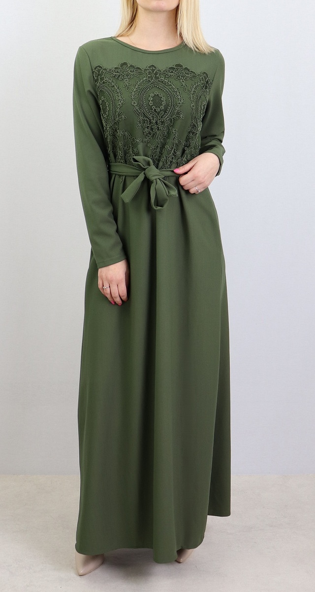 Robe avec broderie en dentelle, ceinture et poches, peut être porté avec ou sans la ceinture... Tissu assez épais (non transparent).