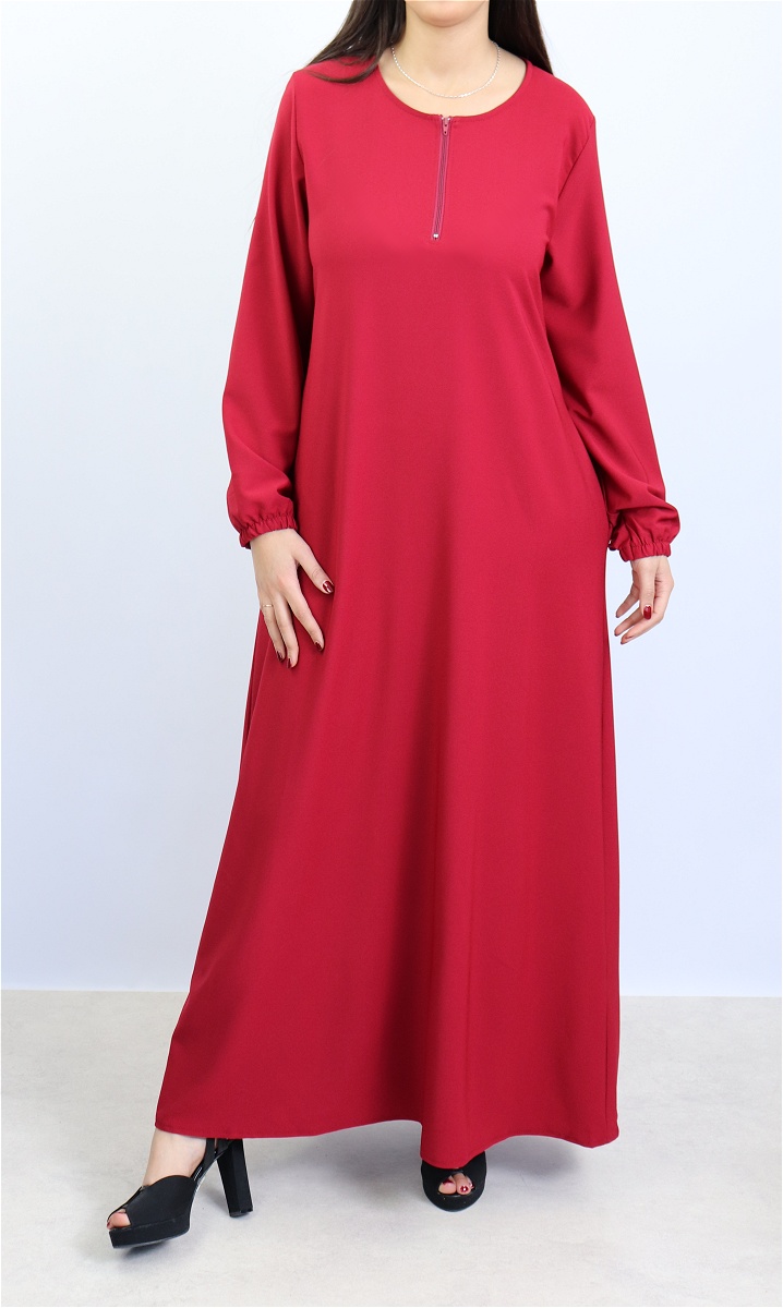Adoptez un look chic des pieds à la tête avec cette robe à manches longues rouge absolument irrésistible. Son col rond ainsi que la fermeture zip à l'avant font d'elle une pièce contemporaine. Ses deux poches sur les côtés ont été ajoutées pour y ranger vos effets. Alors que son tissu fluide non transparent vous permet de la porter en toute saison.