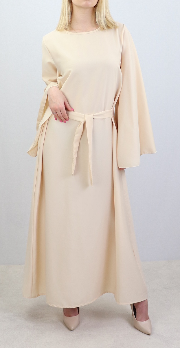 Robe manches evasees avec sa ceinture - Couleur creme