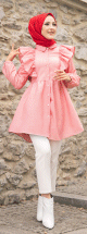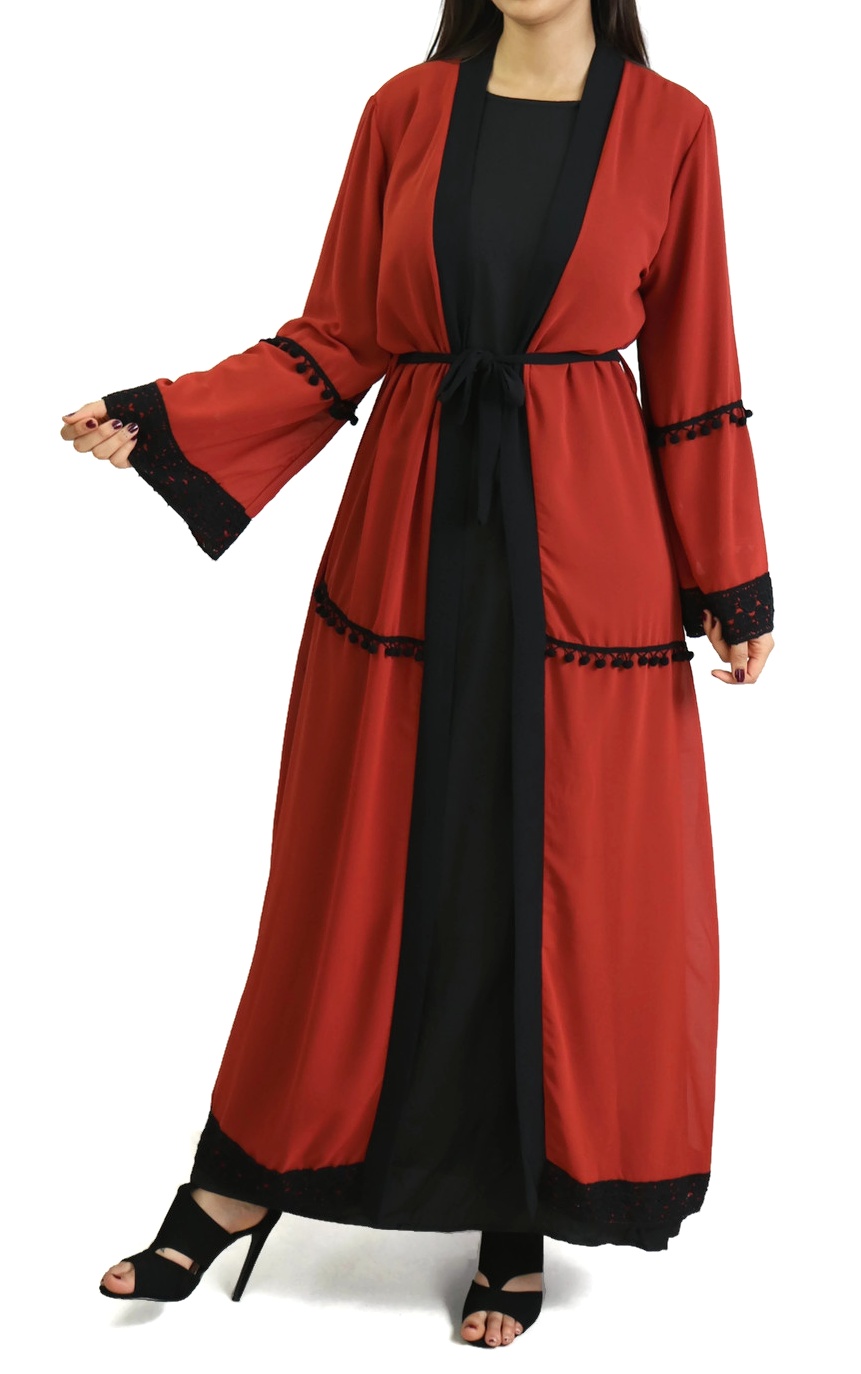 Simple et utile, il se porte ouvert ou fermé et on peut l'ajuster à la taille ou non selon les circonstances. Ses manches sont légèrement évasées, elles sont ornées de pompons qui feront sensation, alors saisissez l'occasion en vous offrant ce beau cardigan.