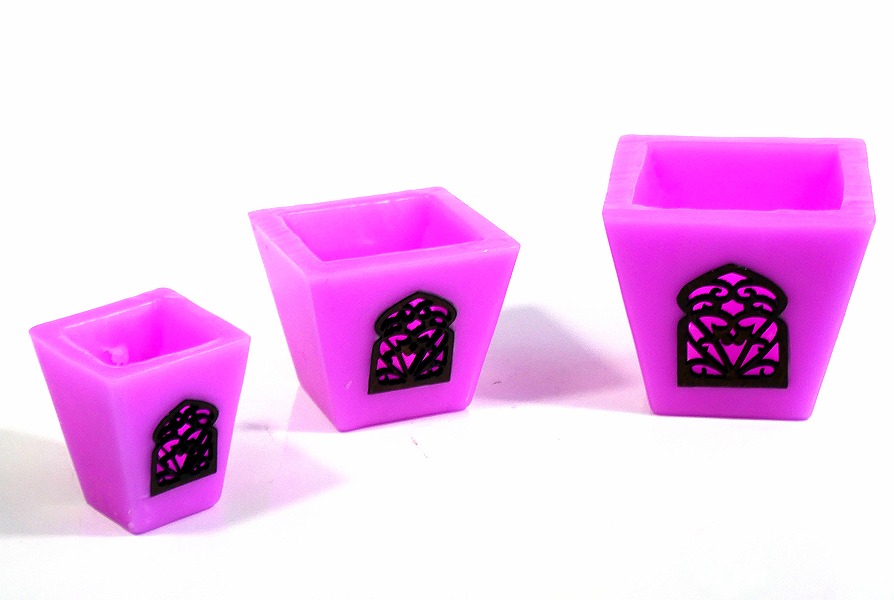 Ensemble de 3 photophores décoratif, provenant de Marrakech (Maroc), peint en violet, émaillé, jolies ciselures en forme d'étoile, de croissant lunaire...