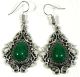 Boucles d'oreilles pendantes en métal argenté ciselé serties de pierres vert - REF. 29556 (5.90 €)