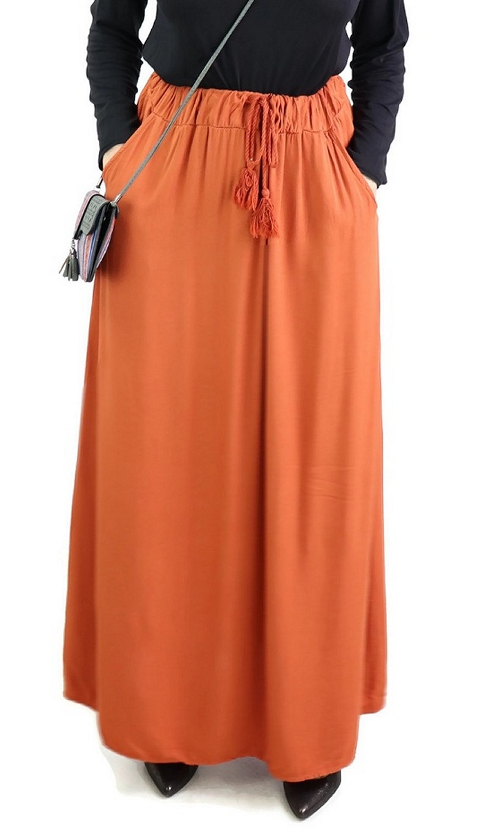 Succombez à cette jupe qui dispose de deux poches sur les côtés pour ranger vos effets, à la taille élastiquée avec cordelettes tressées que vous pouvez serrer ou nouer. Sa matière fluide et son tissu en viscose léger font d'elle la pièce à acquérir ce printemps-été.