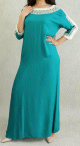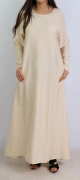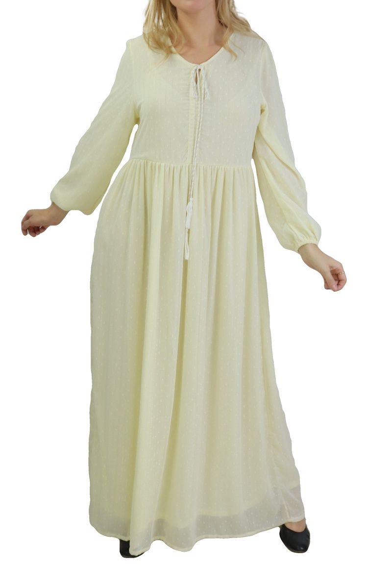 Robe longue fluide coupe évasée, entièrement doublée, fines rayures argentées, col rond doté de cordons. Optez pour cette robe bohème et chic parfaite pour vos beaux événements.