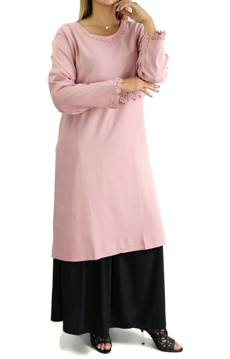 Tunique brodée et perlée - Couleur Rose claire Vetement & Accessoire
