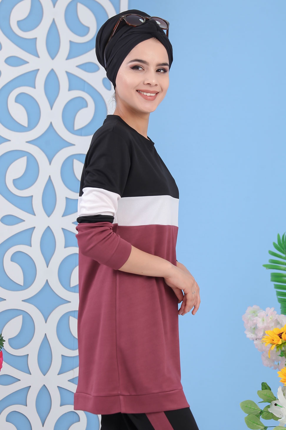 Tenue décontractée et sport deux pièces (Tunique et Pantalon) adaptée à la femme musulmane - Vêtement à 3 couleurs : noir, bleu et blanc - REF. 32919 (24.90 €)