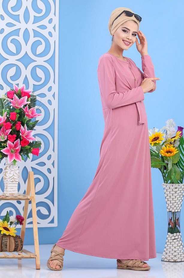 Robe longue couleur unie Rose - REF. 32386 (35.00 €)