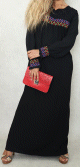 Robe longue avec broderies colorées et perles pour femme - Couleur noire - REF. 33455 (19.90 €)