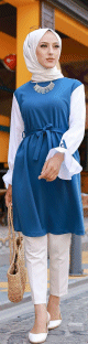 Tunique-chemise style habillé pour femmes (Vêtements chic hijab) - Couleur bleu pétrole - REF. 35997 (24.90 €)