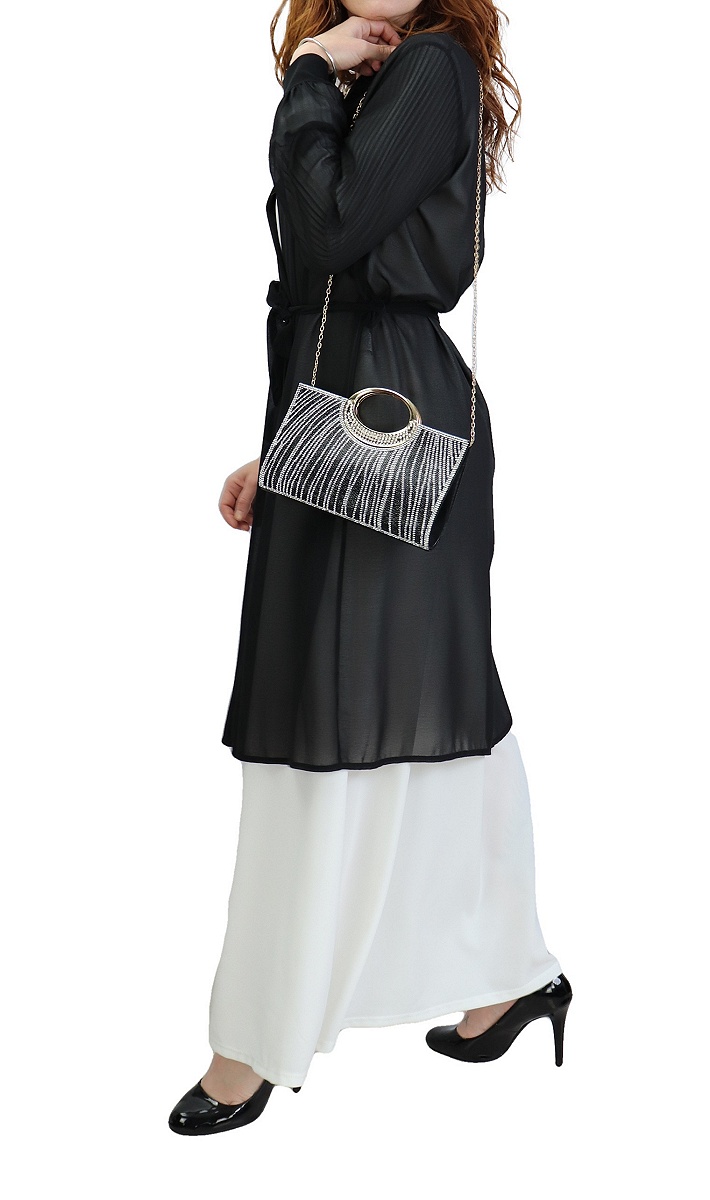 Cardigan long à capuche avec partie argentée - Robe zippée style sport pour femme voilée - Couleur noir, gris et bleu - REF. 35670 (29.90 €)