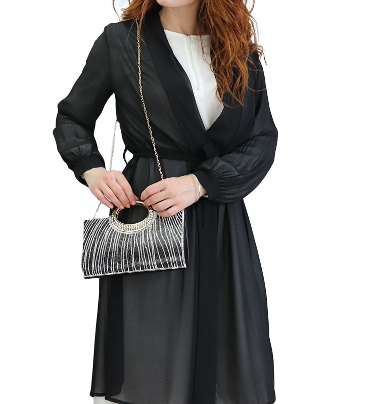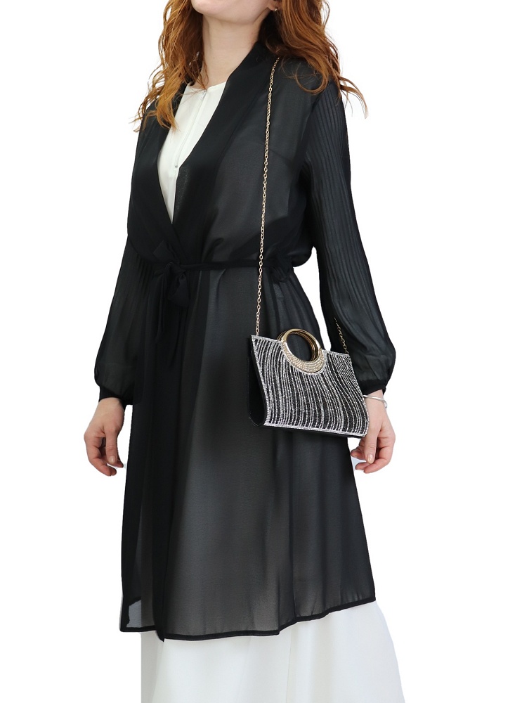 Kimono mi-long avec ceinture en ruban de couleur noir Vetement & Accessoire