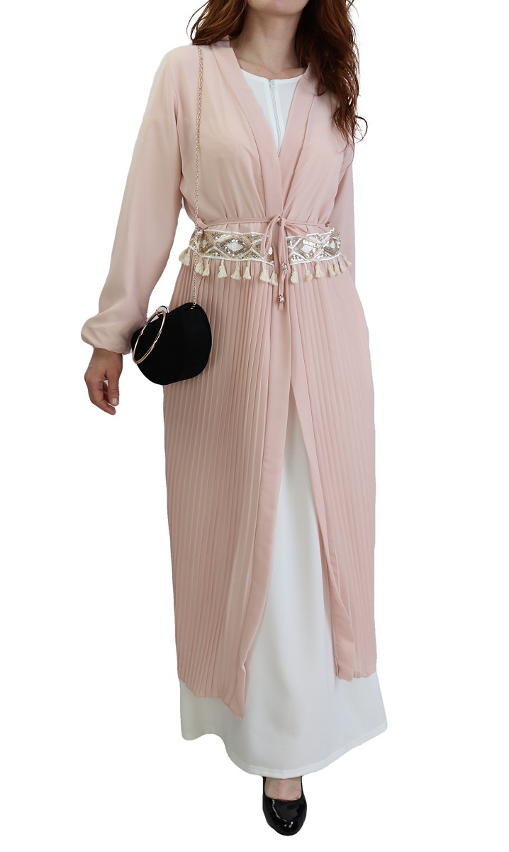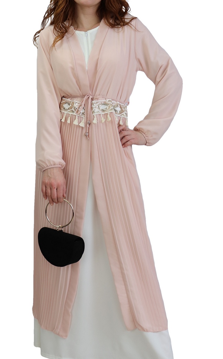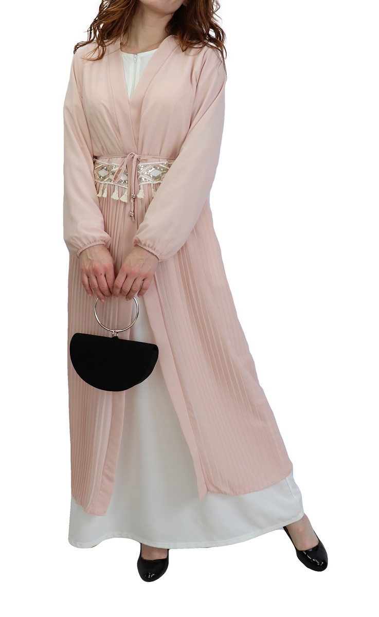 Kimono long, manches finition élastiques, lien de serrage à passants, taille décorée d'une broderie, effet plissé sur la partie du bas. Ce modèle s'adapte à toutes vos tenues et les complète à merveille.