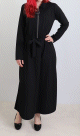 Robe Abaya Dubaï noire ample de qualité avec ceinture interne strass et broderies - REF. 38196 (45.00 €)