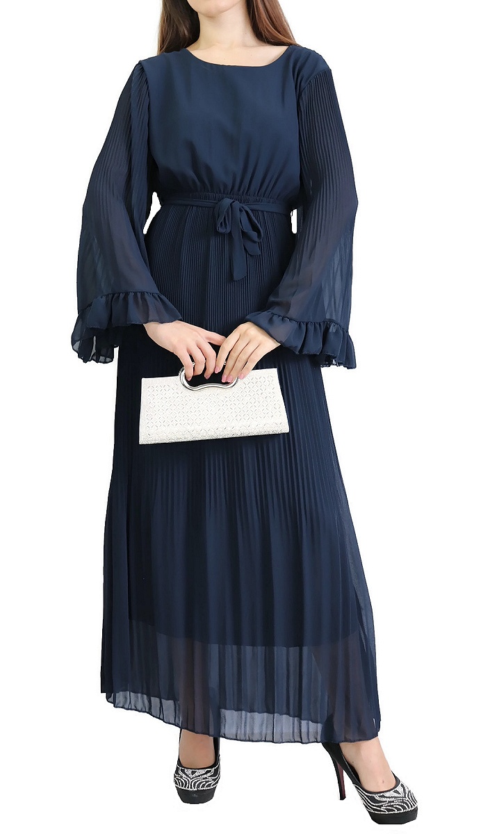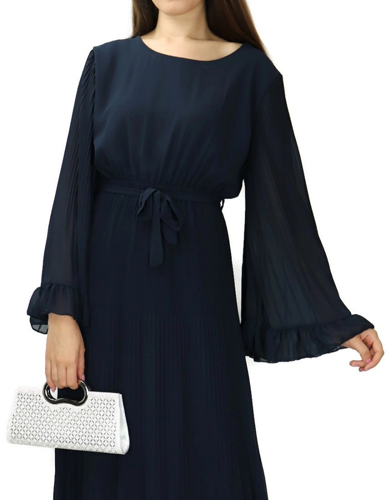 Robe longue plissée avec manches évasées - Taille Standard - Couleur Bleu marine Vetement & Accessoire