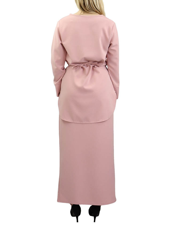 La jupe droite couvrira vos jambes jusqu'aux pieds pour plus de pudeur, alors que le haut à la taille marquée vous assurera un look distingué.