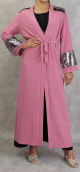 Kimono long, manches larges, ceinture assortie à passants, ornements strass sur les épaules et à mi longueur, tulle noire sur l'ourlet, tissu fluide non transparent.