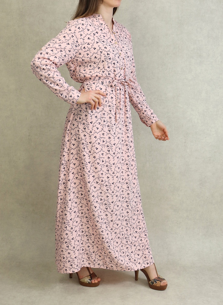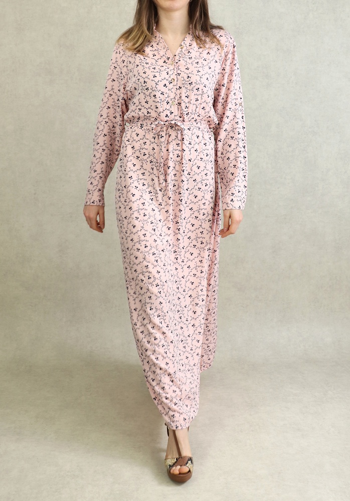 Apportez une touche fleurie à votre penderie avec cette robe rose clair à motif prairie, portez-la avec des sandales pour un look estival réussi.